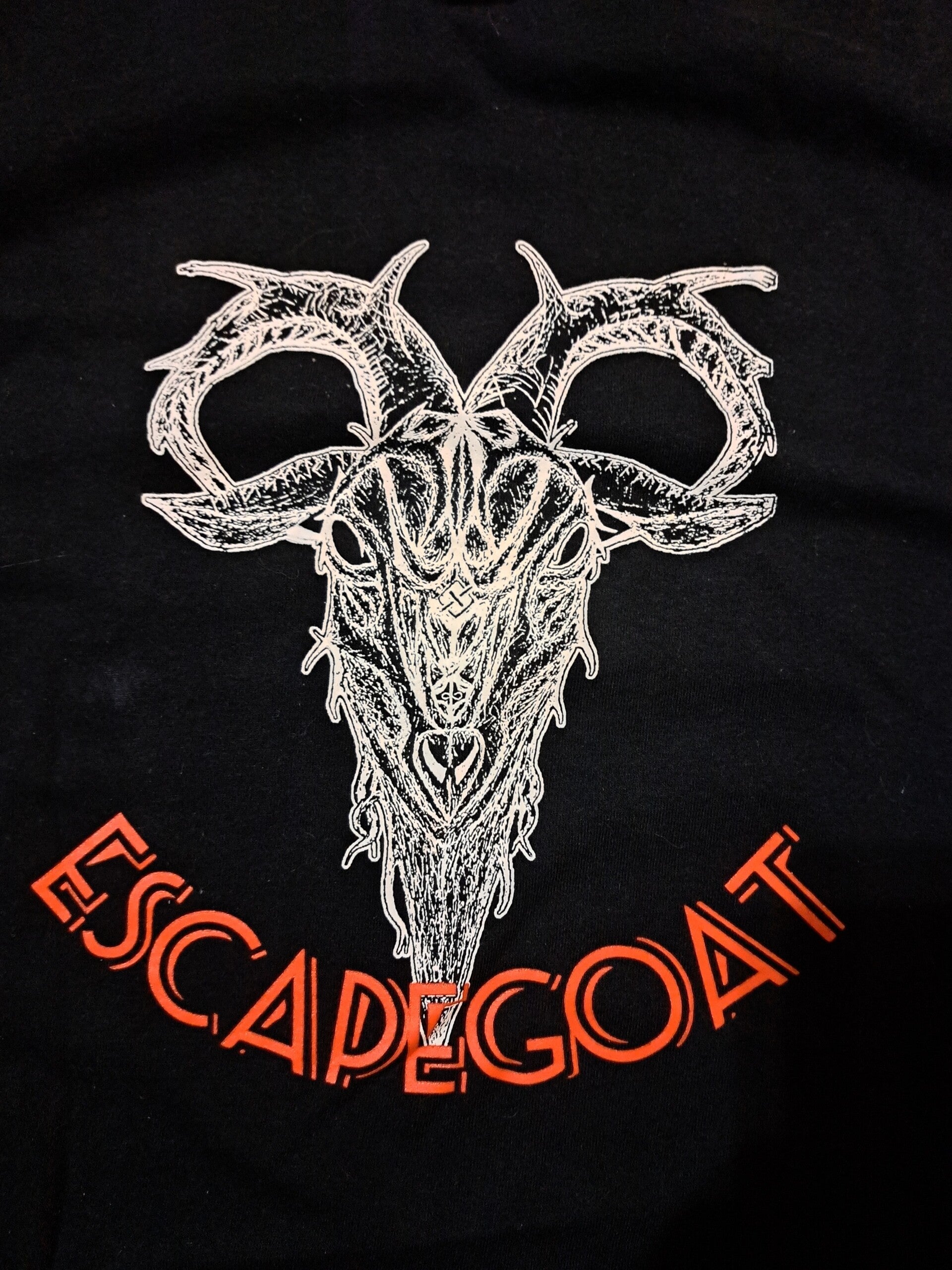 This is the first shirts ever made for Escapegoat printed on Gildan, Heavy Cotton black shirts.